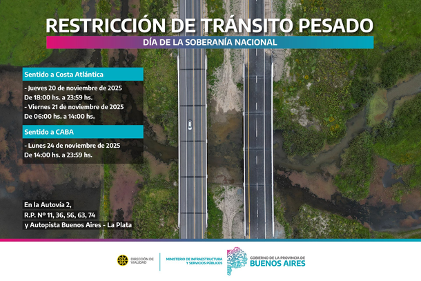Las medidas se aplican el jueves 20 y viernes 21 entre las 06:00 y las 14:00 en sentido a la costa, mientras que el lunes 24 regirá la limitación para el regreso hacia CABA entre las 14:00 y las 23:59. Se trata de una estrategia recurrente en fechas donde se proyecta un movimiento masivo y que apunta a evitar la superposición de vehículos de gran porte con autos particulares.