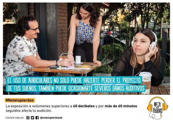 No te la pierdas es una campaña de bien público que busca incentivar el uso correcto de auriculares en la población joven como una manera de cuidar la salud auditiva.