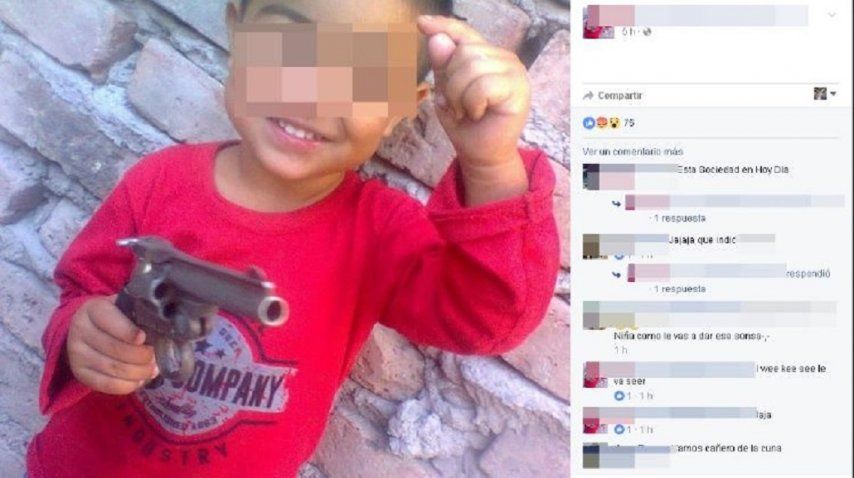 Una joven de San Juan publicó en su cuenta de Facebook la imagen de su pequeño hijo con un arma en la mano. La foto fue compartida por varias personas y rápidamente generó indignación.