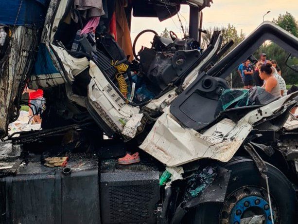 Dos camioneros chocaron este miércoles en el kilómetro 702 de la Autopista de las Serranías Puntanas, cerca de la fábrica Bagley, en Villa Mercedes, San Luis, en la que una familia estuvo involucrada.