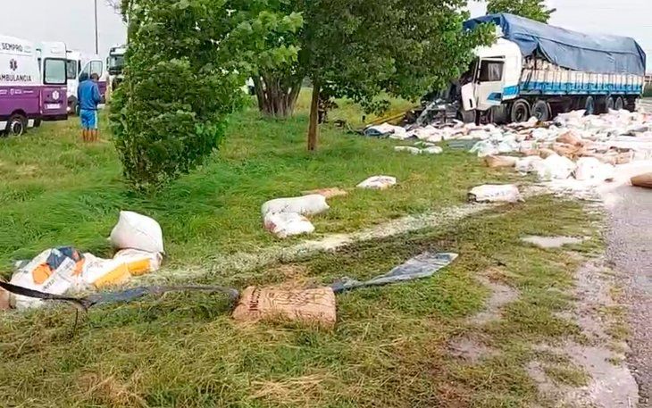 Mientras tanto, los vecinos se acercaron y se llevaron los bultos de harina que quedaron tirados sobre la ruta.