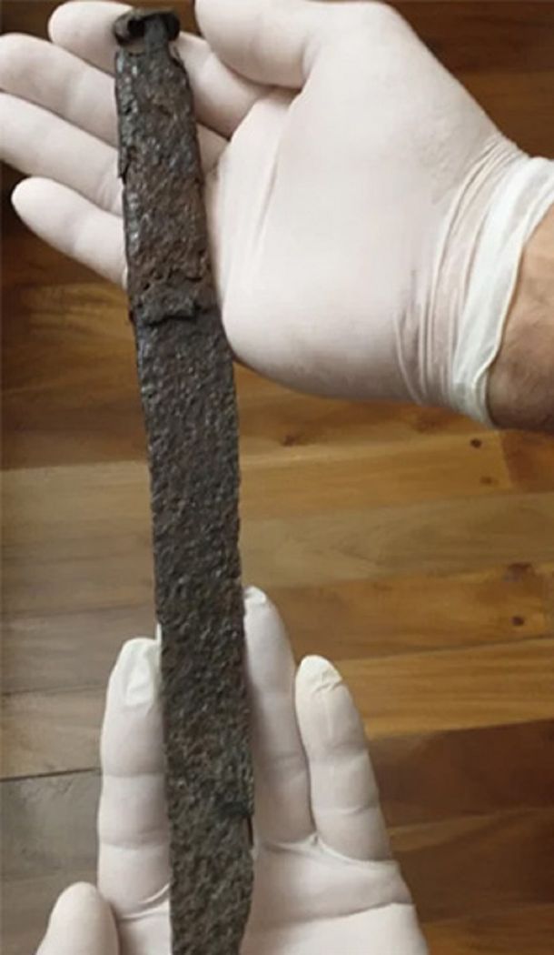 La hoja mide 20,5 cm. de longitud y el resto es el mango, que está hecho de chapa y forjado a golpes alrededor de la espiga que es una continuación de la hoja, destacó el Museo en un comunicado.