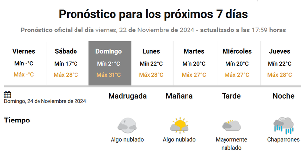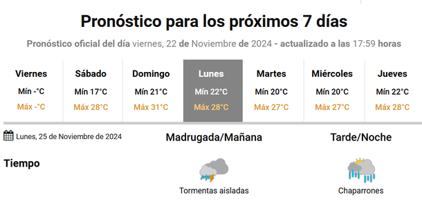 Además, al día siguiente, lunes 25 de noviembre, se esperan lluvias durante toda la jornada cuando solo se anunciaban para la noche.
