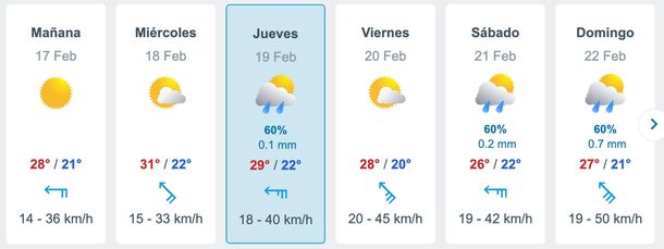 El jueves 19 de febrero marcaría el regreso de las lluvias. El SMN tiene pronósticos de chaparrones para la madrugada y mañana, mejorando en la tarde y noche con cielo mayormente nublado; mientras que el termómetro rondará entre 21 y 29 grados.