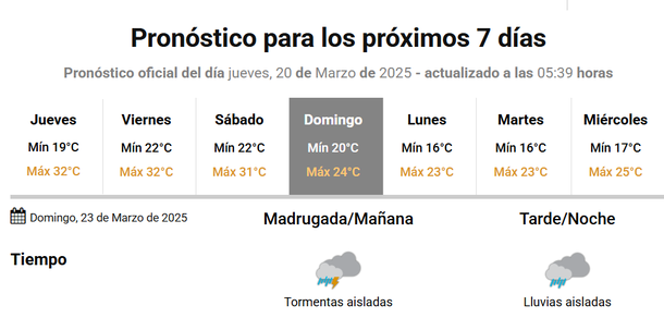 Pero no solo el domingo se esperan lluvias, también se esperan tormentas durante la jornada del lunes 24 de marzo, feriado nacional, y desde ese momento si se dará una baja fuerte de las temperaturas.