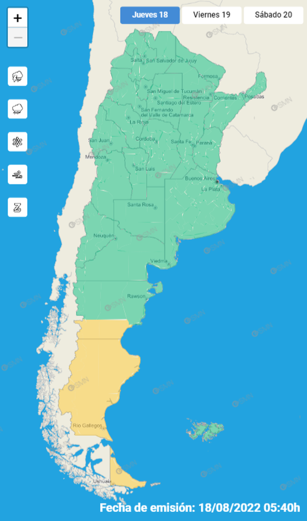 Del mismo modo, el SMN prevé vientos intensos para toda la provincia de Tierra del Fuego, donde también se esperan nevadas de variada intensidad.