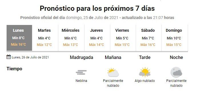 Es que la jornada variará entre una mínima de 8 grados y una máxima de 16.