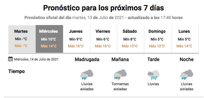 La temperatura mínima para este miércoles se mantendrá en dos dígitos (10 grados) y la máxima apenas alcanzará los 14.