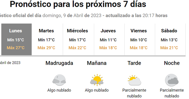 Pronóstico del tiempo del lunes 10 de abril de 2023