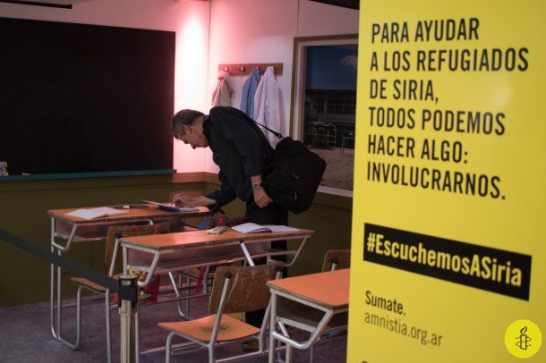 Se trata de una experiencia interactiva que puede visitarse desde este lunes hasta el 24 en la galería subterránea Obelisco Sur en pleno centro porteño (Cerrito al 300). La organización montó una escuela en medio del subte para que las personas puedas vivir la experiencia de estar en una escuela cuando hay una amenaza de bombardeo. Hace unos meses, hicieron lo mismo con una vivienda en siria.