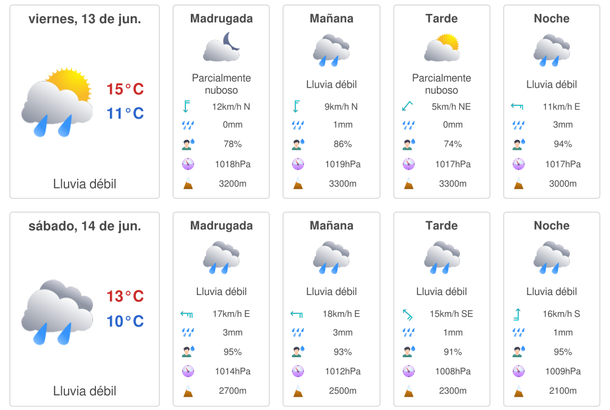 Según el sitio Meteored las lluvias comenzarían el viernes 13 y se prolongarían durante toda la jornada del sábado 14 de junio, con algunos chaparrones fuertes.