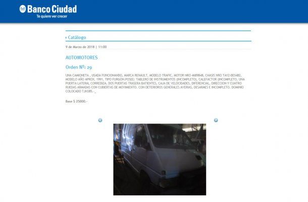 La subasta fue publicada este lunes en el Boletín Oficial. En el catálogo se ofrecen distintas camionetas modelos Renault Kangoo, Trafic y Master y Fiat Ducato. Varias de éstas no funcionan pero se detalla qué tipo de motor y chasis tienen y con qué cuenta cada una.