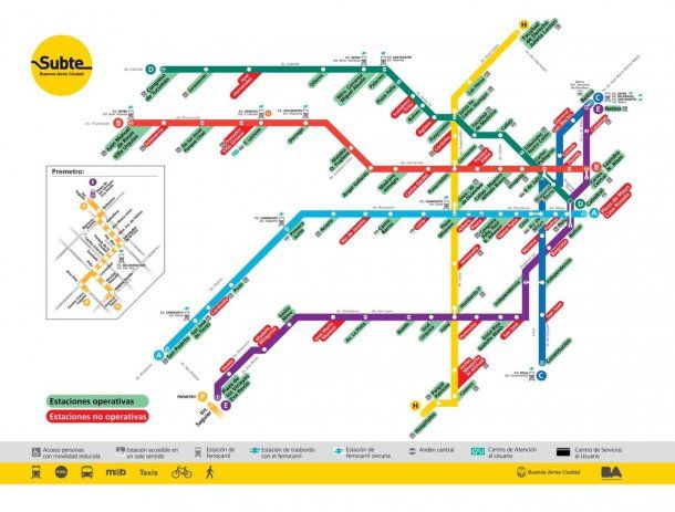 Reabren Puan (A), Uruguay (B), Tribunales (D), General Urquiza (E) y Las Heras (H). Quedan operativas 60 de las 90 estaciones de subte.