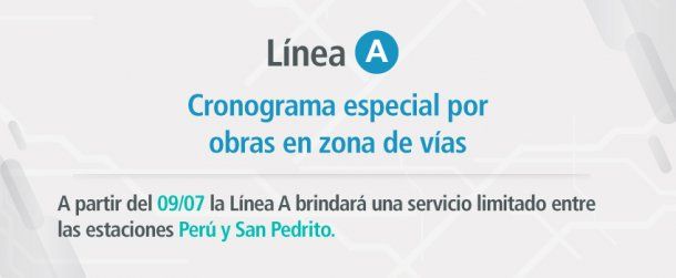 * Desde el lunes 9/7: Servicio limitado entre las estaciones Perú y San Pedrito.