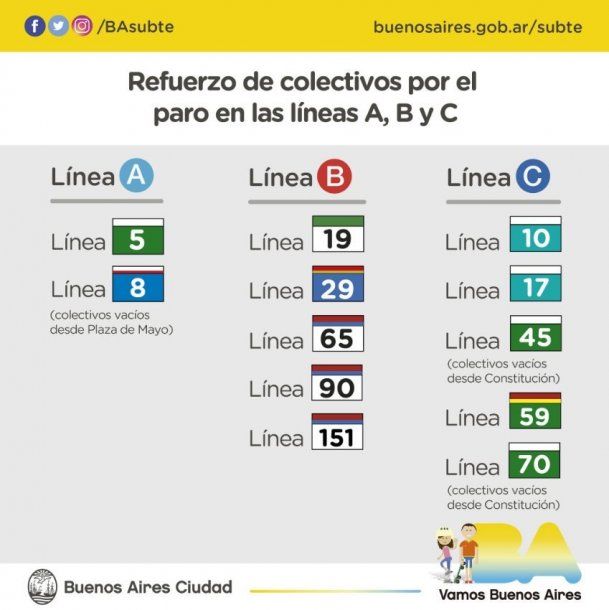 También sumarán servicios cortos, desde Palermo a Constitución, la línea 10, mientras que la línea 17 reforzará unidades entre facultad de Derecho y Constitución, en tanto la 19 lo hará entre Chacarita y Once.