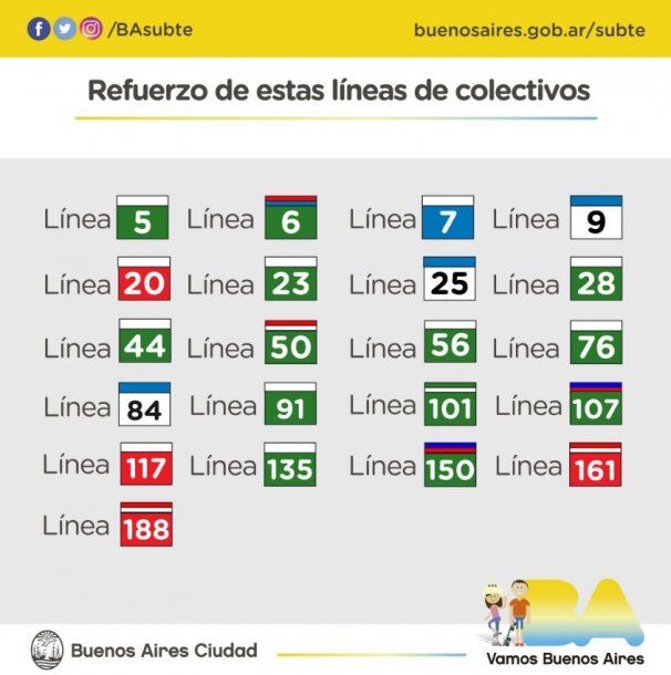 Las líneas que incrementarán la frecuencia y la cantidad de unidades son la 5, 6, 7, 8, 9, 10, 17, 19, 20, 23, 25, 28, 29, 41, 44, 45, 50, 56, 59, 65, 68, 70, 76, 84, 90, 91, 101, 107, 117, 126, 135, 150, 151, 152, 161 y 188.