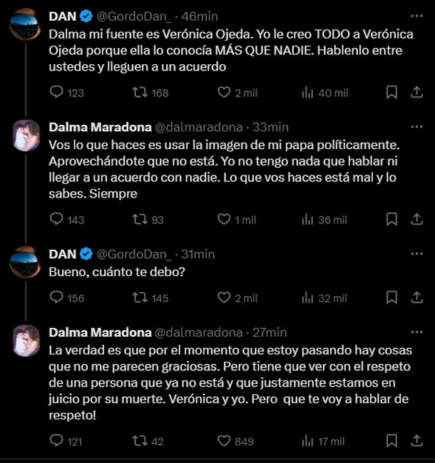 En estos tiempos ya no hay más grafitis en las paredes de las calles, pero existen las redes sociales y se podría decir que a veces cumplen la misma función, como la que buscó instalar empleado estatal y troll libertario Daniel Parisini, alias "El Gordo Dan", que se subió a una desafortunada frase de Verónica Ojeda, quien puso en duda la posición que tendría Diego Maradona sobre el gobierno de Javier Milei, algo que hasta el argentino más distraído tiene claro cuál hubiera sido.