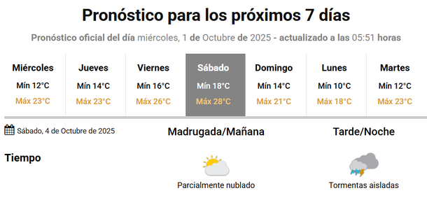 Y pese a las precipitaciones, el sábado será el día más caluroso de la semana en la Ciudad y el Conurbano, con una máximas que se acercará a los 30 grados.