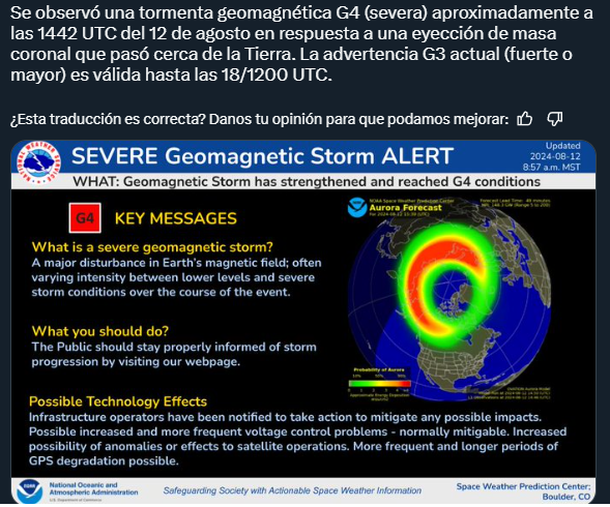 Este evento fue registrado por el Centro de Predicción del Clima Espacial (SWPC) de la Oficina Nacional de Administración Oceánica y Atmosférica (NOAA) de Estados Unidos.