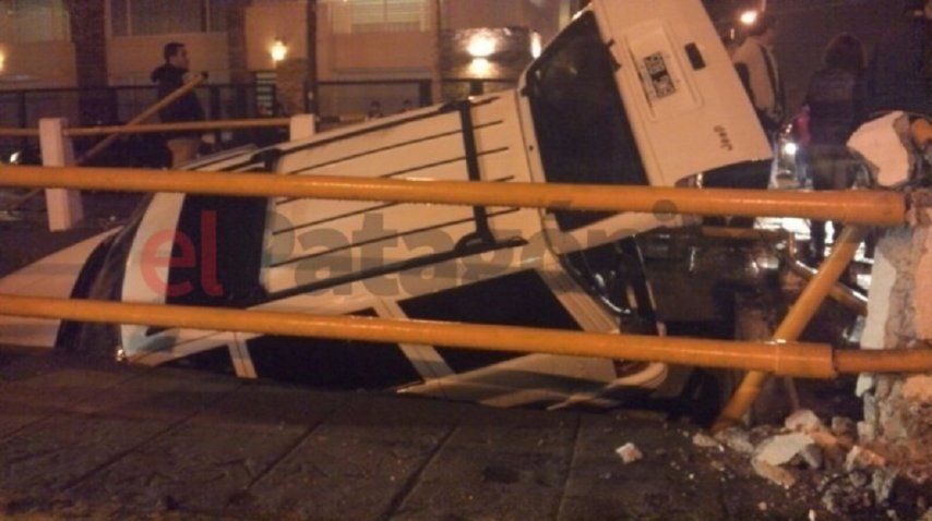 Producto del fuerte impacto que le produjo el Gol, el Jeep -que circulaba por avenida Roca- chocó con la contención y terminó adentro del canal evacuador.