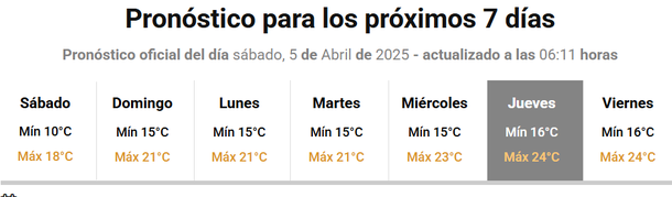 Las temperaturas máximas desde el domingo superarán largamente los 20 grados y para la semana que comenzará el lunes 7 de abril llegarán a los 24-25 grados.