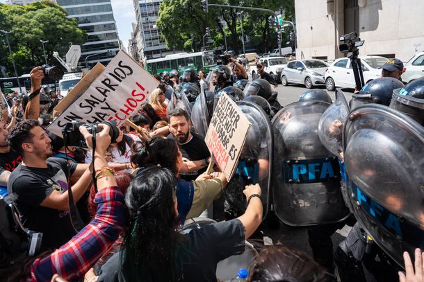 Cerca del mediodía, tras entonar el Himno Nacional y mientras los referentes del FORO pedían retirarse pacíficamente a pedido de la policía, se produjeron los forcejeos. Los testimonios coinciden en que hubo empujones y golpes por parte de la fuerza pública contra personas con discapacidad y sus familias, empañando una jornada que se había desarrollado en calma.