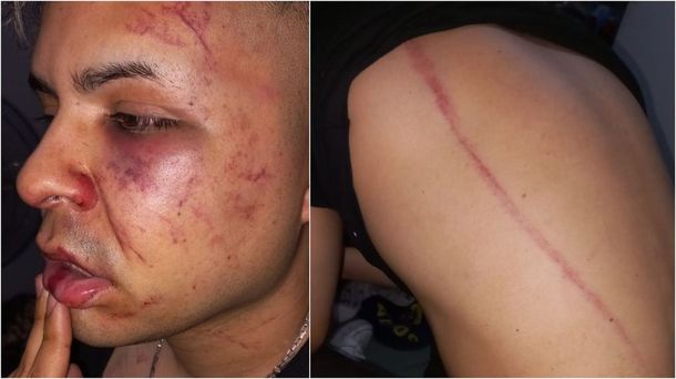 Una de las víctimas, identificada como Nicolás, sufrió varias heridas en el rostro y en la espalda producto de los golpes de puño y los latigazos que le propinó el patovica, según mostró el periodista Luis Medina de Telefé Noticias Tucumán.