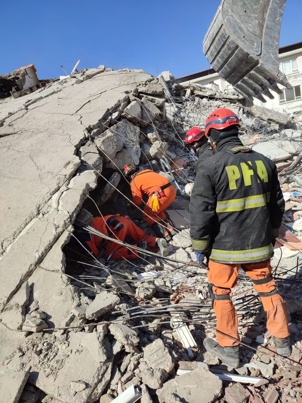 La Brigada USAR ARG 12 de la PFA se encuentra en la ciudad turca de Antakya realizando trabajos de remoción de escombros, rescate de personas y apoyo humanitario.