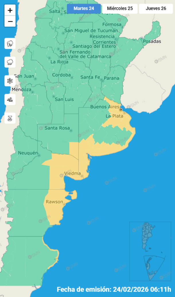 En este sentido, el SMN mantiene el alerta amarilla por tormentas para advertir a la población sobre por posibles fenómenos meteorológicos con capacidad de daño y riesgo de interrupción momentánea de actividades cotidianas.