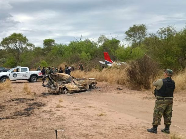 A escasos metros de la avioneta encontraron un auto totalmente incendiado, se cree que de manera intencional, y con destrucción completa. Otros videos muestran al vehículo prendiéndose fuego.