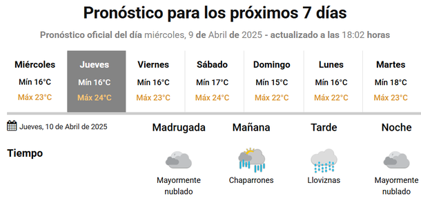 El mejor día de los que vienen será este sábado 12 de abril, porque el sol dirá presente durante casi toda la jornada, con marcas térmicas agradables, que se ubicarán entre los 17 y 25 grados.