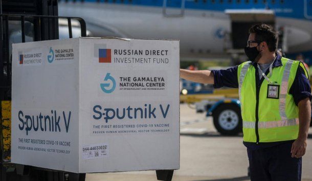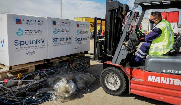 El vuelo AR1061 arribó pasadas las 14 con 330.000 dosis de la vacuna fabricada en Rusia.