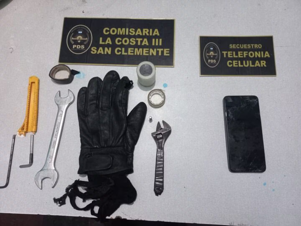 Fuentes policiales detallaron que durante las requisas a los detenidos se secuestraron guantes de cuero negros, un celular y varias herramientas de mano, los cuales fueron remitidos a la Policía Científica para su análisis.