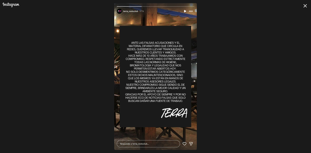 Desde el restaurante aseguraron que trabajan hace más de 10 años "respetando estrictamente todas las normas de higiene, bromatología y legalidad". Finalmente, advirtieron que el caso ya está en manos de sus asesores legales por tratarse de declaraciones "malintencionadas" que buscan dañar una fuente de trabajo.