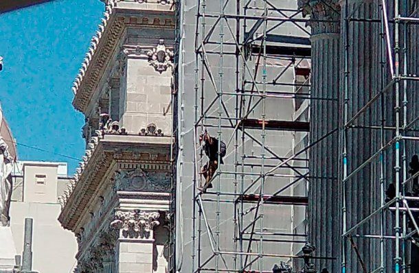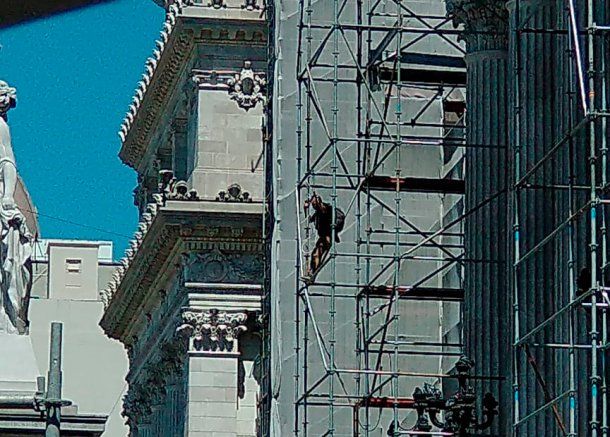 Un hombre trepó a los andamios del Congreso y amenazó con tirarse: el video del rescate