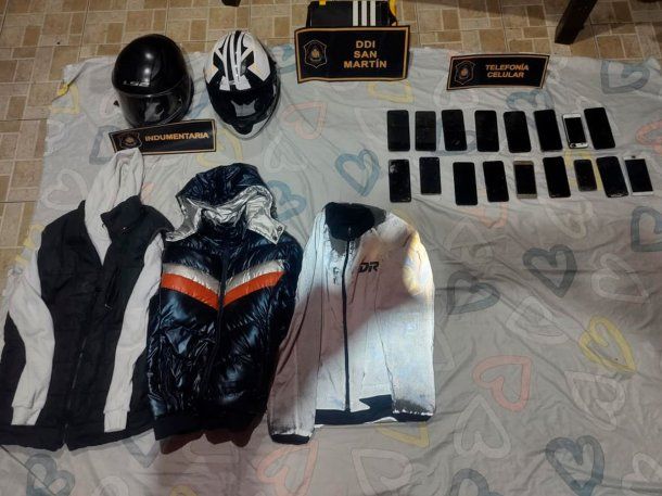 En el allanamiento, la DDI encontró un casco de moto blanco, con vivos negros y otro casco negro, utilizados en el ataque que le costó la vida a Ledesma y el robo de la moto Honda, en un expediente a cargo de la UFI N°2 de San Martín. Se incautaron otras dos motos y 17 celulares.