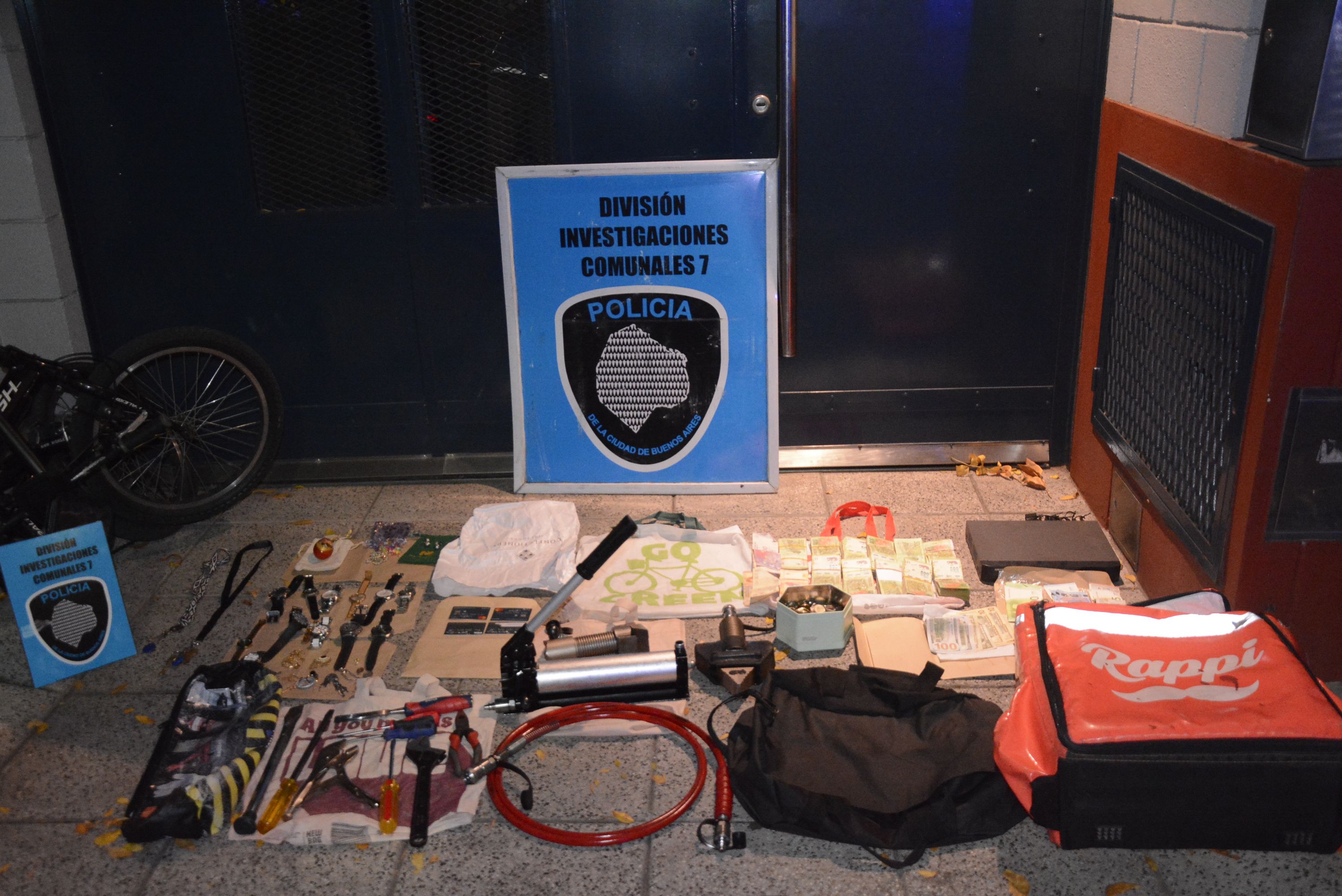 Los oficiales secuestraron también un bolso de herramientas donde estaba el expansor hidráulico, distintas computadoras, 20.000 pesos, 100 dólares, prendas de vestir, un receptor de señal y varias herramientas de efracción.