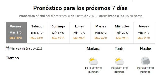 El Servicio Meteorológico Nacional (SMN) prevé para este viernes 6 de enero en Villa Gesell cielo parcialmente nublado, vientos intensos del norte con ráfagas y una temperatura que irá de los 18 a los 30 grados.