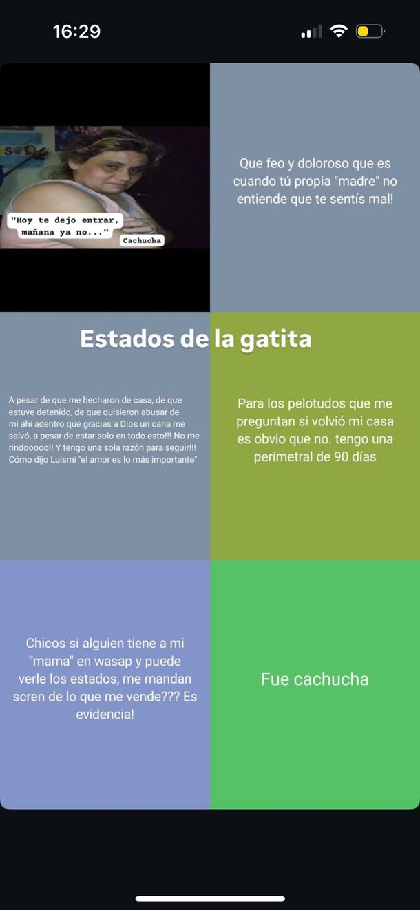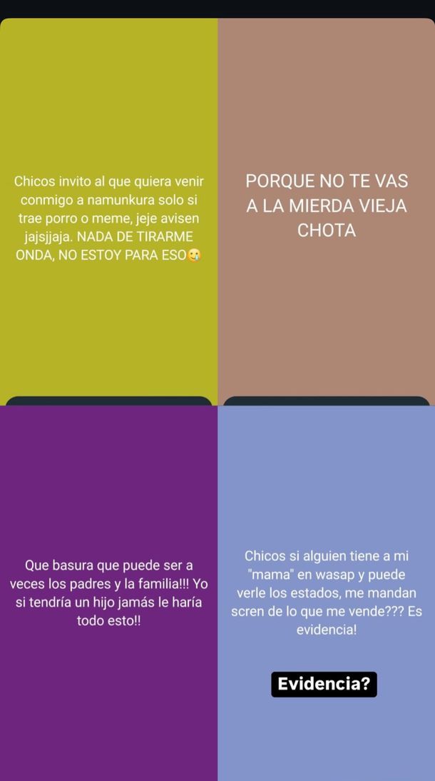“¡Que basura que pueden ser a veces los padres y la familia! ¡Yo sí tendría un hijo jamás le haría todo esto!”, sostenía mientras que en otro estado pedía que le enviaran capturas de los estados de WhatsApp de su madre como “videncia”.