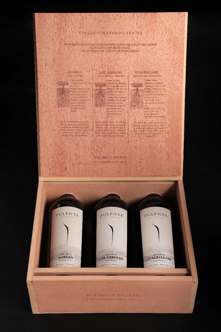 En Mendoza, la Bodega Pulenta Estate armó un set de tres botellas de Malbec con el lema "Tres terroirs, un estilo" que renueva la línea de vinos Single Vineyard con las etiquetas Agrelo, Los Árboles y Gualtallary. La caja tiene un costo de casi $ 20.000 pero cada etiqueta se puede adquirir por separado en la web del establecimiento.