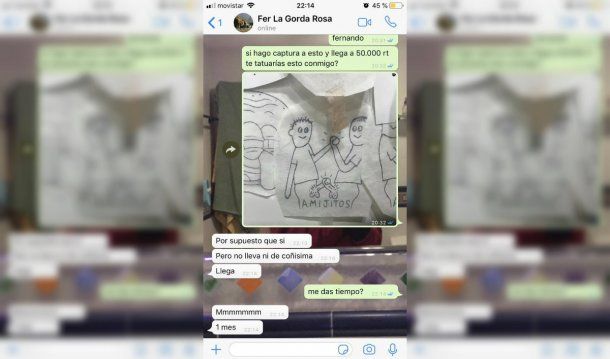 El usuario en cuestión es Sabater, quien le propuso un diseño lleno de humor y picardía para su amigo Fernando, tal como lo demostró en el chat de Whatsapp que compartió el lunes pasado.