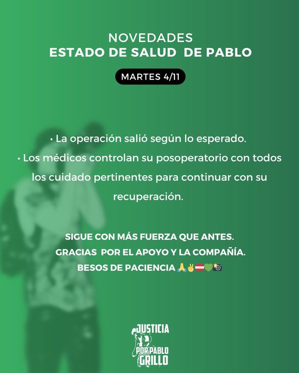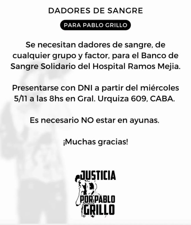 Volvieron a operar a Pablo Grillo: ahora, su familia pide dadores de sangre
