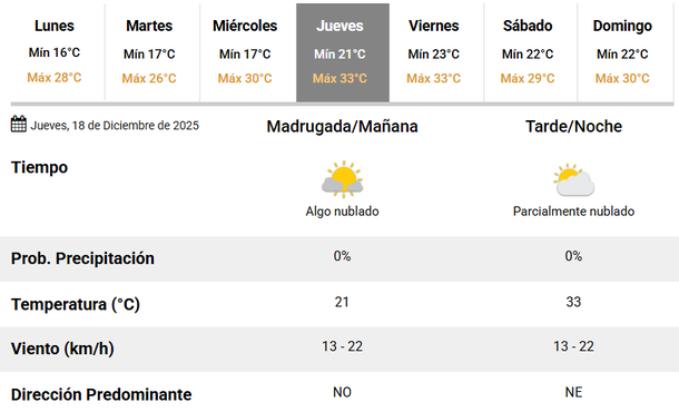 Luego, el viernes también las temperaturas oscilarán entre los 23 y 33 grados, en una jornada que se presume será sumamente calurosa.