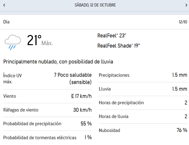Lo cierto es que el regreso de las lluvias está pronosticado para el próximo sábado 12 de octubre, que en Argentina configura un feriado por el Día del Respeto a la Diversidad Cultural. Lo peor de esta noticia es que todo ese fin de semana estará marcado por las precipitaciones.