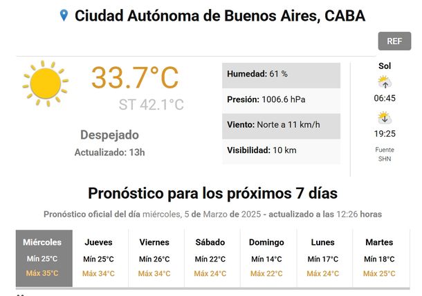 Las mismas condiciones climáticas se esperan para el jueves 6 y viernes 7 de marzo en la zona del AMBA, con jornadas donde otra vez las marcas térmicas podrán superar los 40 grados.