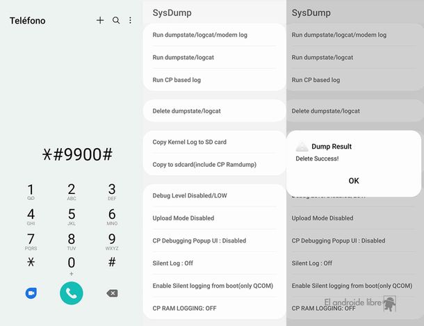 Al pulsar “Deletedumpstate/logcat” se borrarán los archivos basura del registro.