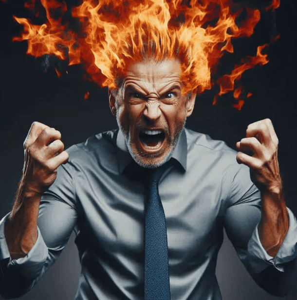 Furia es uno de los personajes más intensos de la película. Está representado como un hombre maduro, con camisa y corbata. Como en la película, muestra fuego saliendo de su cabeza.