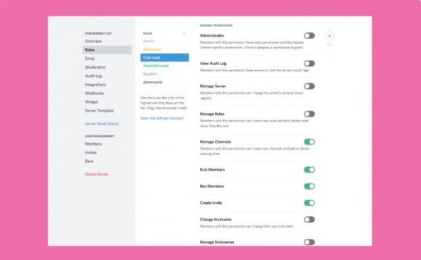 El servidor posee canales de texto ordenados y mentions que le permiten al usuario hablar de manera organizada sobre temáticas especificas.