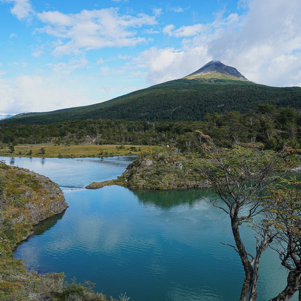 La Bahía Lapataia, ubicada en Ushuaia, Argentina, es técnicamente un fiordo, pero comúnmente se clasifica como una bahía. Se encuentra en el Parque Nacional Tierra del Fuego, rodeada de bosques magallánicos y cordones montañosos de la Cordillera de los Andes.