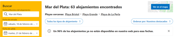 A los departamentos y casas, se le suma que para carnaval el nivel de reservas hoteleras supera el 80 por ciento, al punto de las que se venden a través de aplicaciones o por web, el nivel alcanza al 96 por ciento.